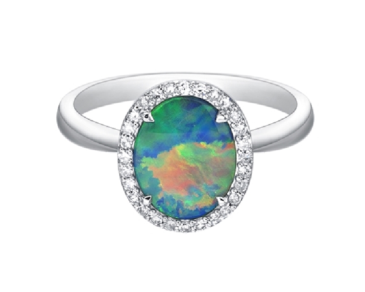 Oval Opal Doublet with 0.15ctw Diamond Halo 10K White Gold Ring - Size 6 3/4