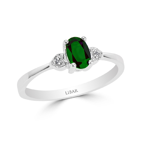 Oval Emerald with 0.01ctw Diamond 10K White Gold Ring