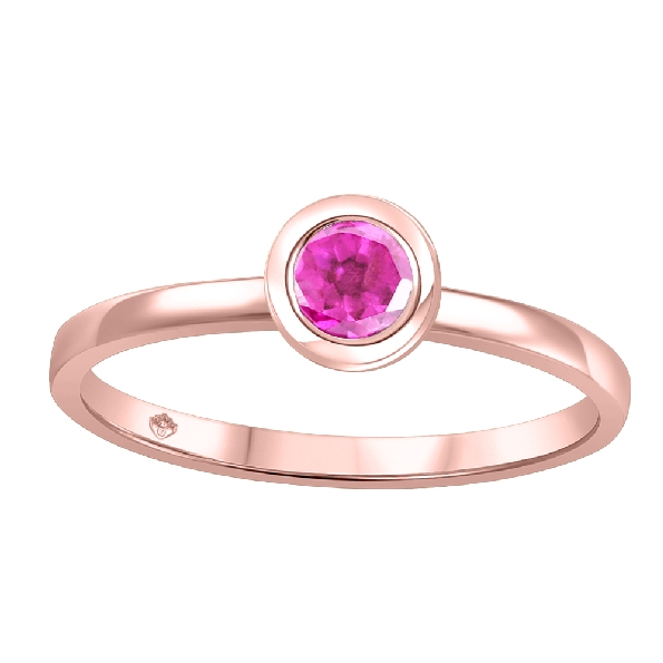 Round Pink Topaz Bezel Set 10K Rose Gold Ring - Size 6 1/2 - Made In Canada