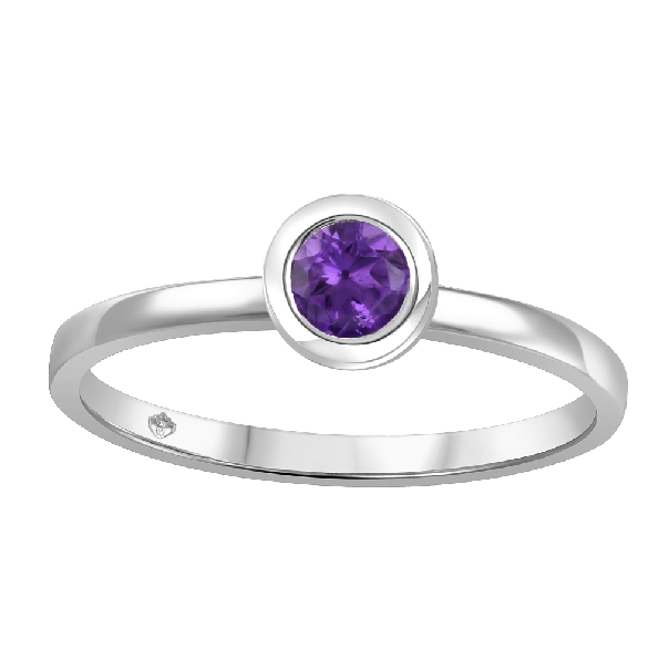 Round Amethyst Bezel Set 10K White Gold Ring - Size 6 1/2 - Made In Canada