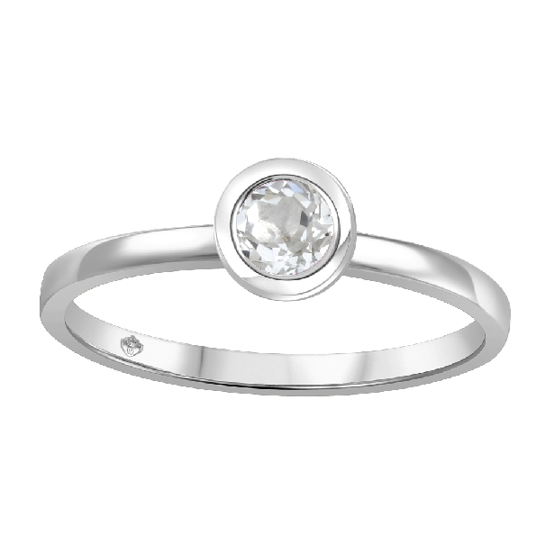 Round White Topaz Bezel Set 10K White Gold Ring - Size 6 1/2 - Made In Canada