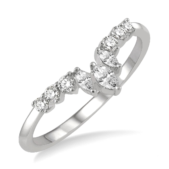 0.33ctw Marquise and Round Diamond SI2-I1 Clarity; GH Colour Pointed 14K White Gold Ring - Size 7