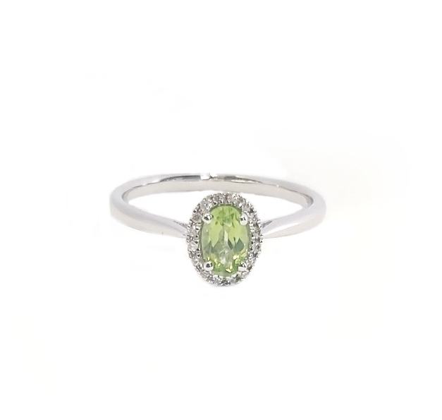 Oval Peridot with 0.06ctw Diamond Halo 10K White Gold Ring