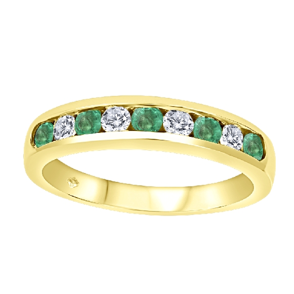 0.247ct Fire and Ice Diamond I1 Clarity; G-I Colour (CAD191986; CAD191989; CAD191984; CAD191985) with Five Emerald Gemstones Channel Set 14K Yellow Gold Band - Made in Canada