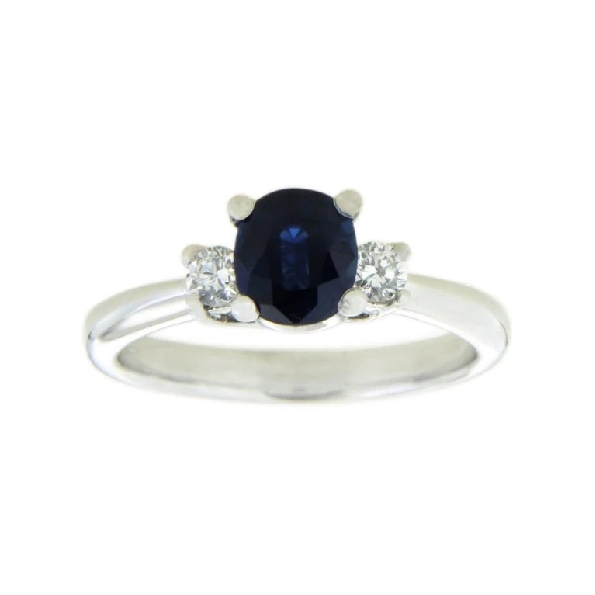 Oval Shape Blue Sapphire 0.94ct with 0.18ctw Diamond Three Stone 14K White Gold Ring