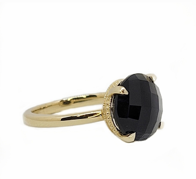 Round Faceted Onyx 10K Yellow Gold Bezel Ring