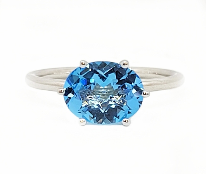 Oval Faceted Swiss Blue Topaz 14K White Gold Ring - Size 5 3/4