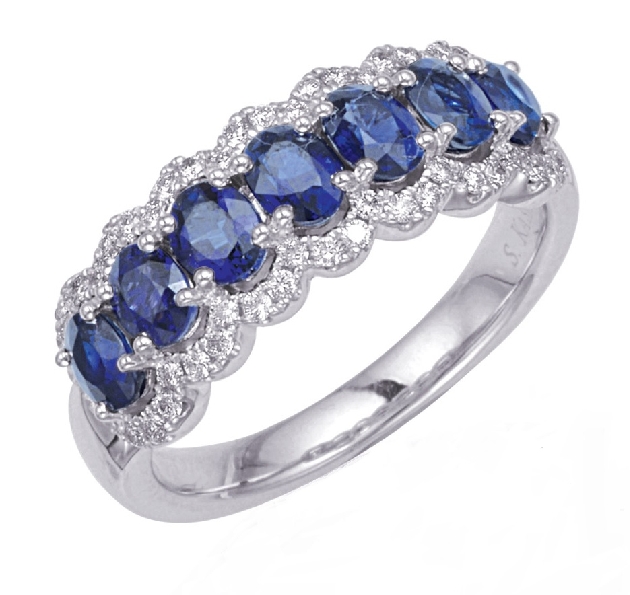 Seven Oval Sapphire 1.57ctw with 0.25ctw Round Diamond SI1 Clarity; G Colour 14K White Gold Ring