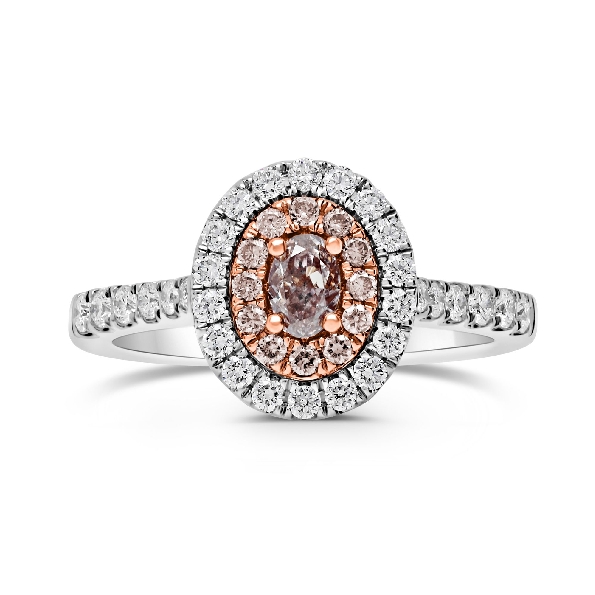0.23ctw Oval Pink Diamond with 0.17ctw Pink Diamond and 0.44ctw Diamond VS2-SI1 Clarity; FG Colour Double Halo 18K White and Rose Gold Ring