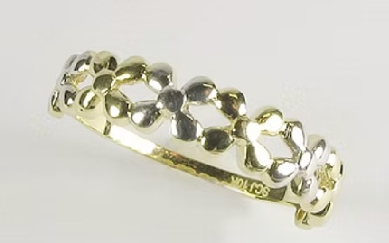 Diamond Cut Flower 10K Yellow Gold with White Rhodium Ring - Size 9