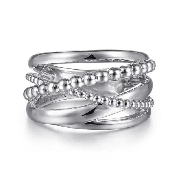 High Polished and Beaded Criss Cross Design Sterling Silver Ring from the Bujukan Collection by Gabriel & Co. - Serial No. S2150974
