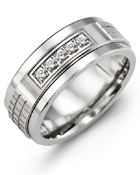 0.15ctw Diamond 9mm Carved 10K White Gold Inlay and Cobalt Wedding Band MSRP: $1,910 SKU: MKC910BW-15R Get more info on this Share: Share on Twitter Share on Pinterest Share on Facebook