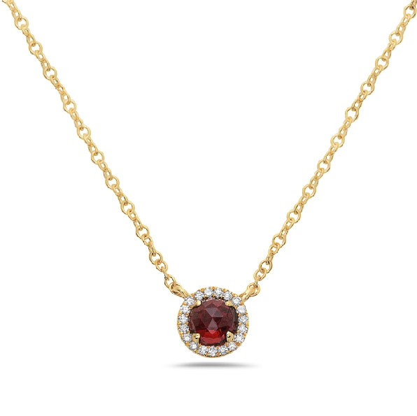 Round Garnet with 0.05ctw Diamond Halo 14K Yellow Gold Necklace by Bassali Jewellery - 18 Inch MSRP: $1,620 SKU: NK12250DG Get more info on this Share: Share on Twitter Share on Pinterest Share on Facebook