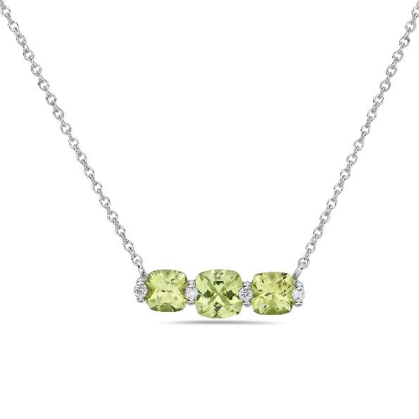 Three Cushion Cut Peridot with 0.03ctw Diamond 14K White Gold Necklace by Bassali Jewellery - 16-18 Inch