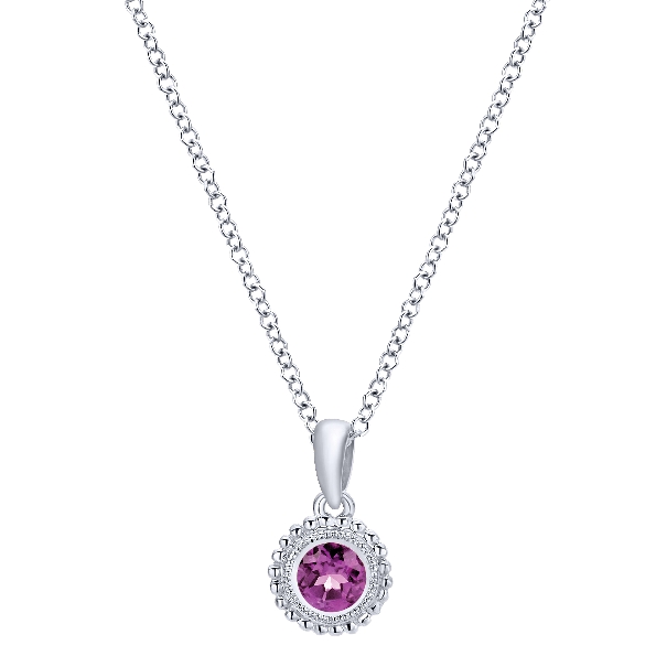 Amethyst with Beaded Frame Sterling Silver Pendant and Chain - 16 Inch - from the Secret Garden Collection by Gabriel & Co. - Serial No. S2242303