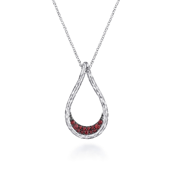 Hammered and Brushed Tear Drop Garnet with Black Rhodium Finish Sterling Silver Pendant and Chain from the Souviens Collection by Gabriel & Co. - Serial No. S2273187