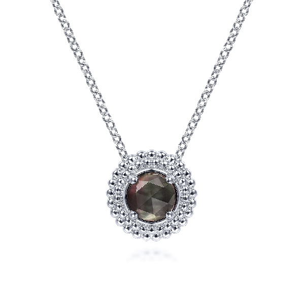 Rock Crystal and Black Mother of Pearl Beaded Border Design Sterling Silver Pendant and Chain from the Bujukan Collection by Gabriel & Co. - Serial No. S2242310