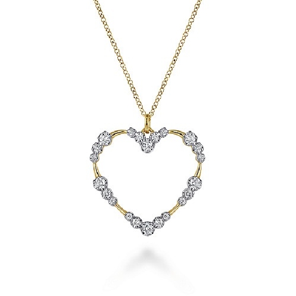 0.55ctw Diamond Graduated Station Heart 14K Yellow Gold Pendant and Chain from the Contemporary Collection by Gabriel & Co. - 17 1/2 Inch Adjustable - Serial No. S1754021