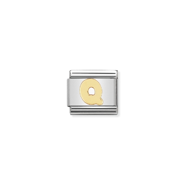 Composable Classic Letters Initial Q Stainless Steel with 18K Yellow Gold Bracelet Link by Nomination Italy