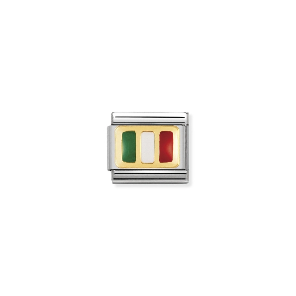 Composable Classic Enamel Flags Italy Stainless Steel with 18K Yellow Gold Bracelet Link by Nomination Italy