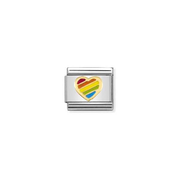 Composable Classic Symbols Heart with Enamel Rainbow Stainless Steel with 18K Yellow Gold Bracelet Link by Nomination Italy