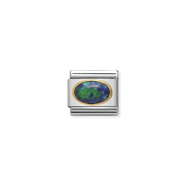 Composable Classic Stones Oval with Green Opal Stainless Steel with 18K Yellow Gold Bracelet Link by Nomination Italy