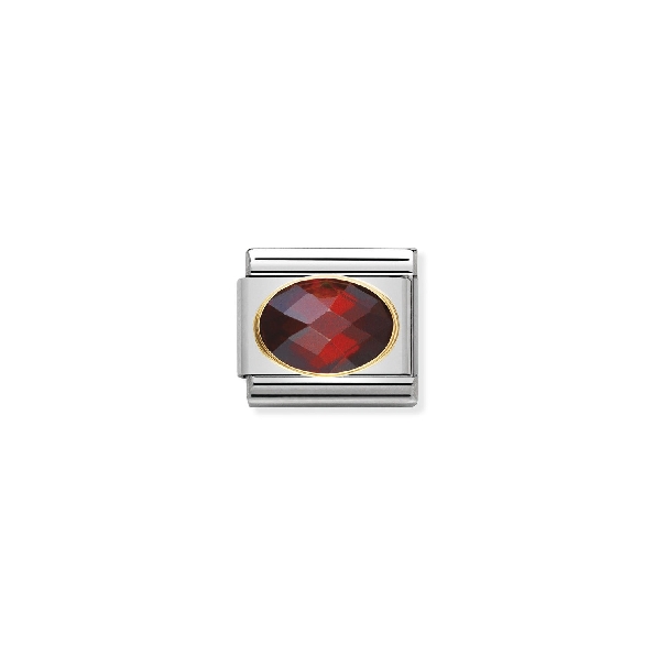 Composable Classic Oval Faceted Red Cubic Zirconia Stainless Steel with 18K Yellow Gold Bracelet Link by Nomination Italy