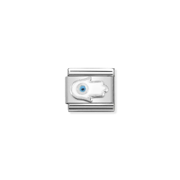Composable Classic Symbols Hand of Fatima with Blue and White Enamel Stainless Steel with Sterling Silver Bracelet Link by Nomination Italy