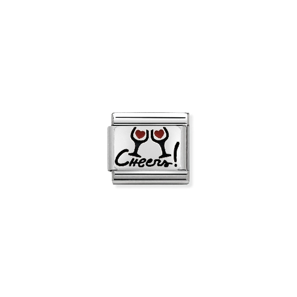 Composable Classic Oxidized Cheers! with Wine Glasses and Red Enamel Hearts Stainless Steel with Sterling Silver Bracelet Link by Nomination Italy