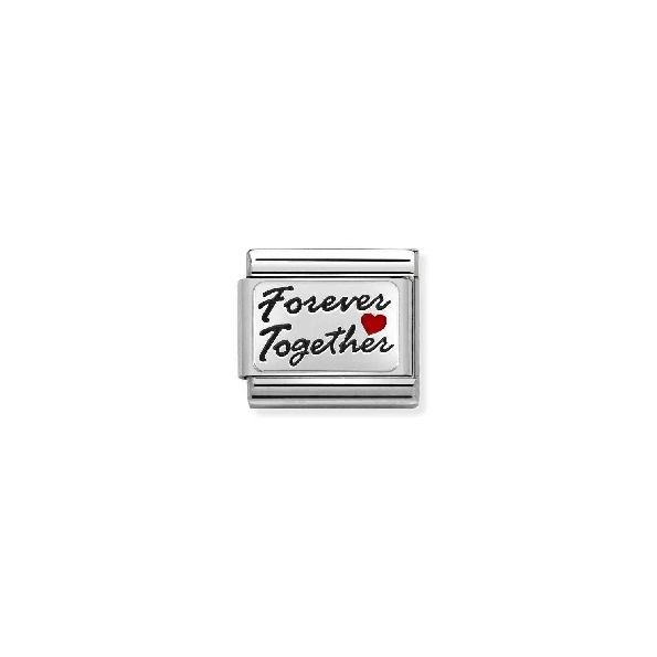 Composable Classic Oxidized Forever Together with Red Enamel Heart Stainless Steel with Sterling Silver Bracelet Link by Nomination Italy