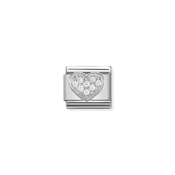 Composable Classic Symbols Pave White Cubic Zirconia Heart Stainless Steel with Sterling Silver Bracelet Link by Nomination Italy
