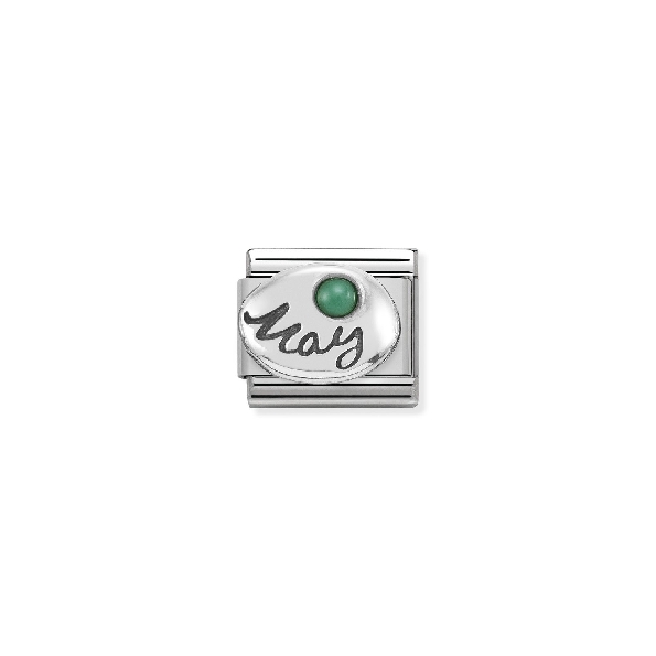 Composable Classic Birthstone May Simulated Emerald Stainless Steel with Sterling Silver Bracelet Link by Nomination Italy