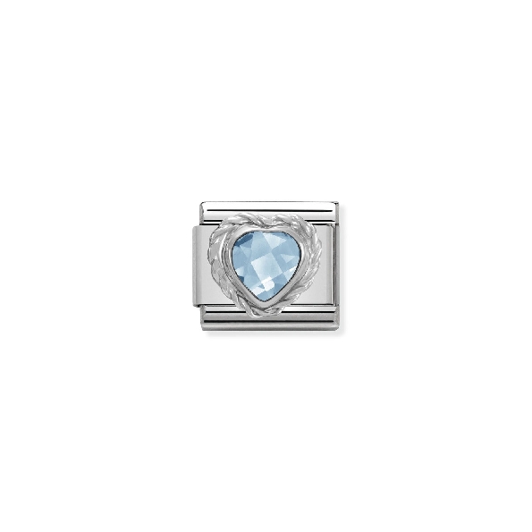Composable Classic Heart with Blue Cubic Zirconia Stainless Steel with Sterling Silver Bracelet Link by Nomination Italy