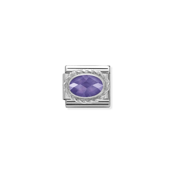 Composable Classic Oval Purple Cubic Zirconia Stainless Steel with Sterling Silver Bracelet Link by Nomination Italy