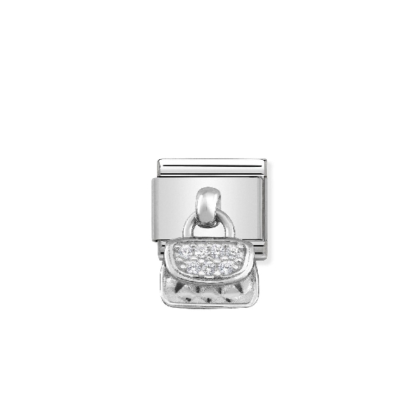 Composable Classic Charms White Cubic Zirconia Purse Dangle Stainless Steel with Sterling Silver Bracelet Link by Nomination Italy