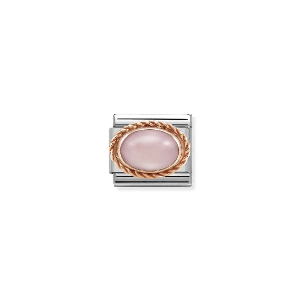 Composable Classic Stones Oval with Pink Opal Stainless Steel with 9K Rose Gold Bracelet Link by Nomination Italy