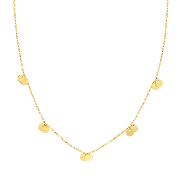 Five Double Dangle Round Baby Disc Adjustable 14K Yellow Gold Choker Necklace - 16-18 Inch - Midas Collection