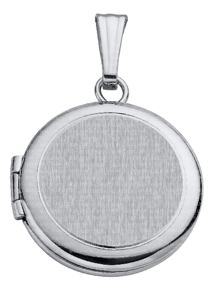 Small Round Brushed Centre High Polished Border Sterling Silver Locket with 18 Inch Chain - Locket Studio Code: R13S