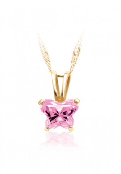 October Pink Cubic Zirconia Butterfly 10K Yellow Gold Pendant from the BFly Collection (Chain not included)