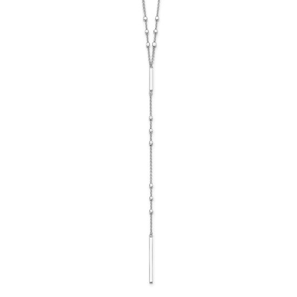 3D Vertical Bar with Station Beads Sterling Silver with Rhodium Plating Lariat Necklace - 22 Inch Adjustable