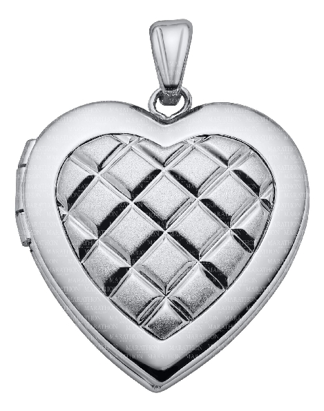 Quilted Hand Engraved Brushed Centre Sterling Silver Locket with 18 Inch Cable Chain - Locket Studio Code: H19S
