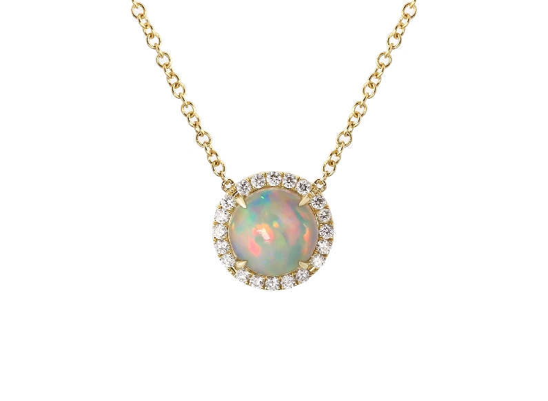 Round Opal 1.87ct with 0.28ctw Diamond SI1 Clarity; GH Colour Halo 14K Yellow Gold Pendant and Chain MSRP: $3,240 SKU: PE00877 Get more info on this Share: Share on Twitter Share on Pinterest Share on Facebook …
