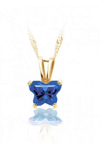 September Blue Cubic Zirconia Butterfly 10K Yellow Gold Pendant from the BFly Collection (Chain not included)