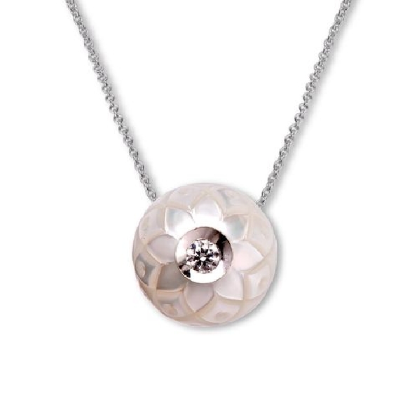 9mm Cultured White Fresh Water Carved Pearl with 0.04ctw Diamond Harlequin 14K White Gold Necklace by Galatea