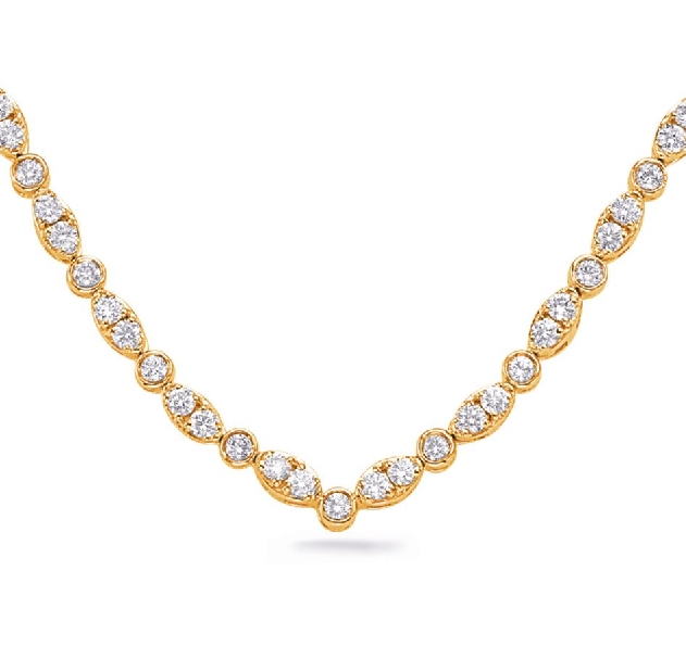 0.50ctw Diamond SI1 Clarity; G Colour Round and Marquise Shapes 14K Yellow Gold Necklace - 18.5 - 20.5 Inch