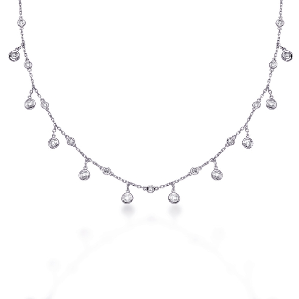 0.82ctw Round Diamond SI1 Clarity; G Colour Bezel Set Station Dangle 14K White Gold Necklace - 16 - 18 Inch