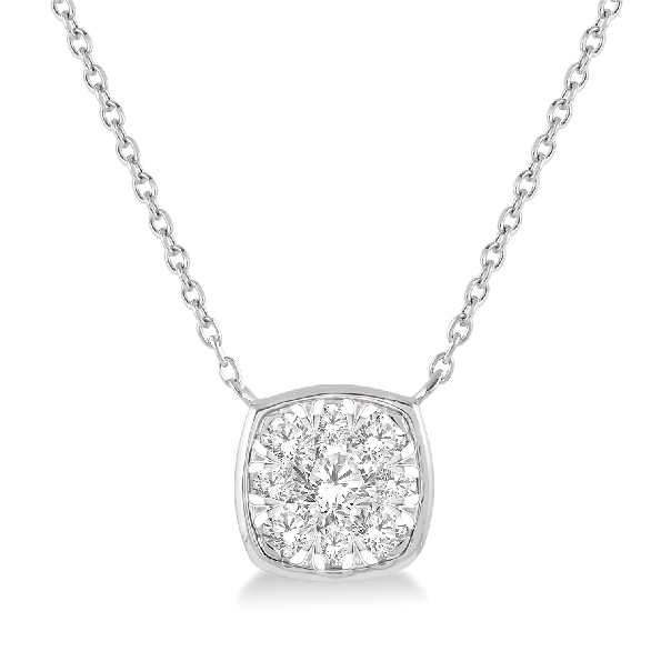 0.30ctw Diamond I1 Clarity; IJ Colour Love Bright Cushion Bezel Solitaire 14K White Gold Necklace - 16-18 Inch