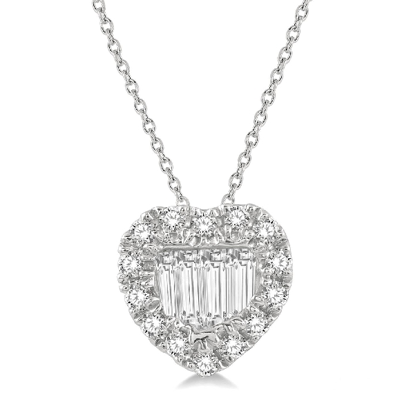0.20ctw Baguette and Round Diamond I1 Clarity; IJ Colour Fusion Heart 14K White Gold Pendant and Chain - 16-18 Inch
