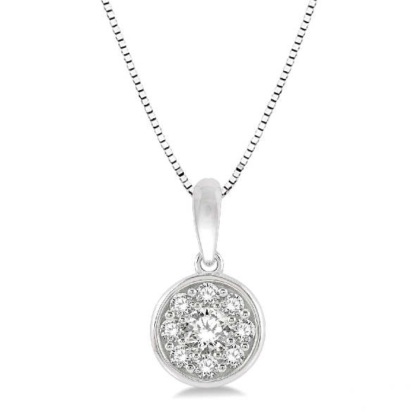 0.33ctw Diamond I1 Clarity; IJ Colour Love Bright Round Bezel Solitaire 14K White Gold Pendant (Chain not included)
