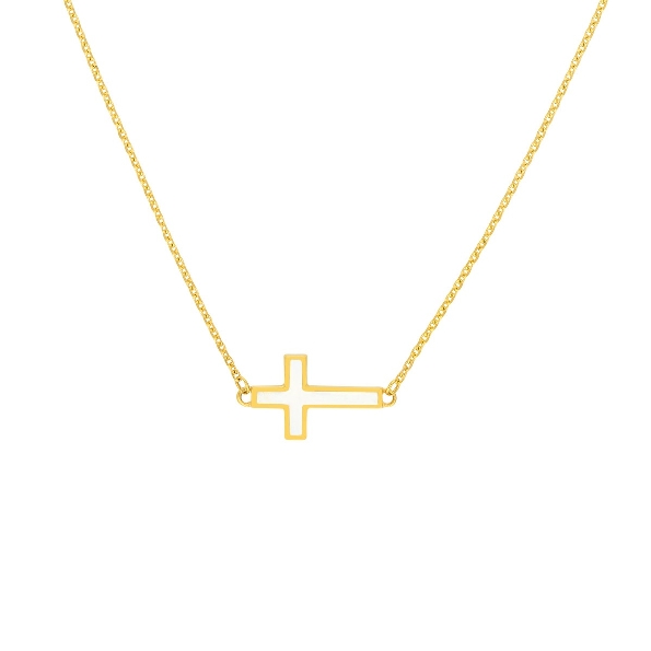 White Enamel Sideways Cross 14K Yellow Gold Pendant and Chain - 18 Inch Adjustable - Midas Collection - Midas Collection